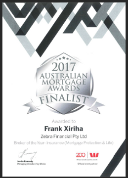 Nominations for the prestigious Australian Mortgage Awards (AMA) recognise Mortgage Brokers who have demonstrated exceptional services. In 2017, Zebra Financial was nominated for the 'ALI Group Broker of the Year - Insurance (Mortgage Protection & Life)' Award.